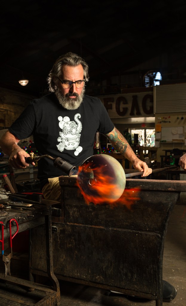 “We can try to do everything exactly the same every time, but each piece is still going to come out a little bit different,” he said. “I like the inherent chaos that goes along with glass. That’s part of the allure of it—that you can only control up to so much. With my work, I like for there to be a little bit of happenstance.”