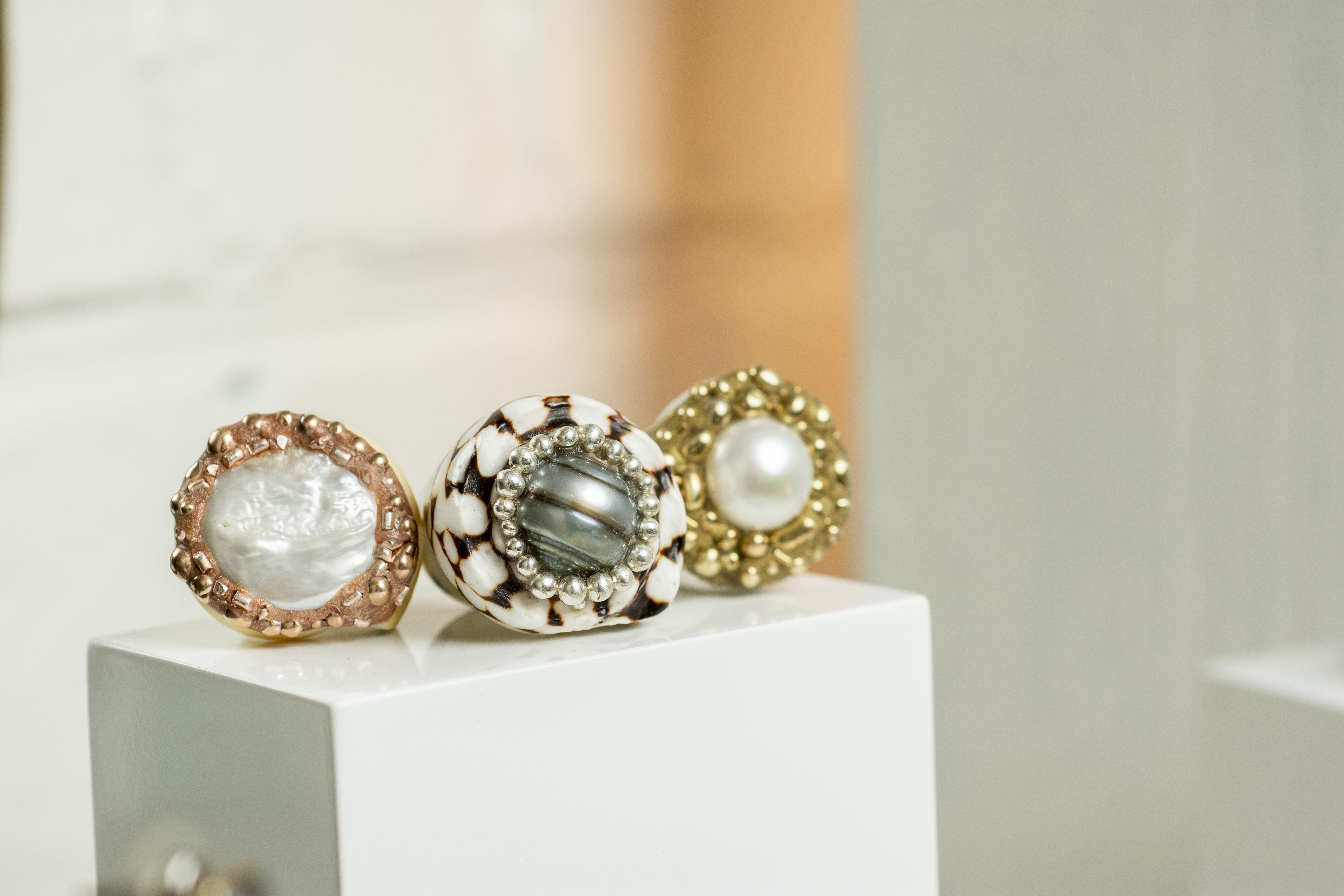 “The initial attraction to pearls and shells comes from my fascination with working with naturally found materials,” she said. “I love being able to take that natural beauty and make it into something both wearable and beautiful.”