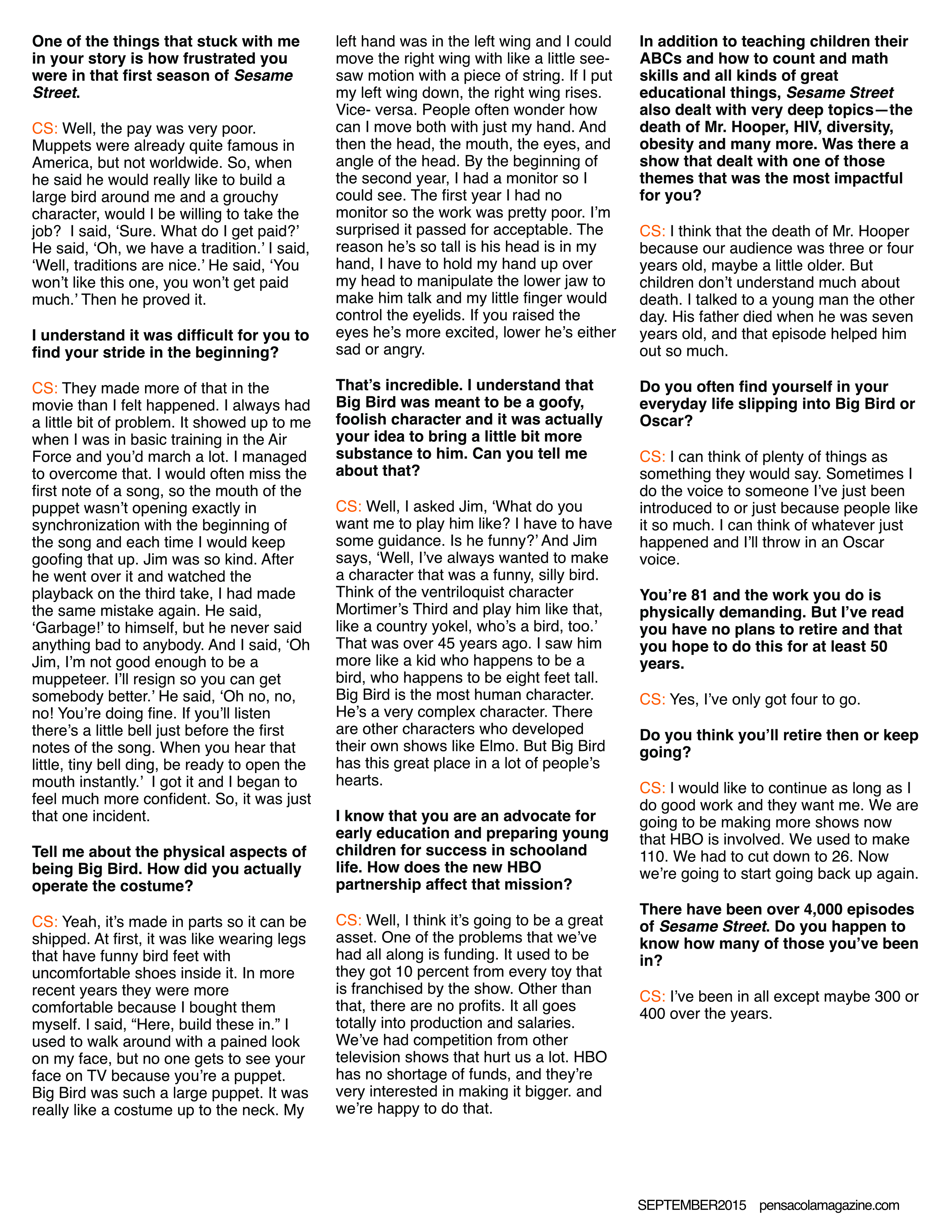 Over nearly two decades, I’ve conducted more than 100 interviews with celebrities, politicians, business leaders, photographers, artists, activists and cultural figures for Coming of Age and Pensacola Magazine.